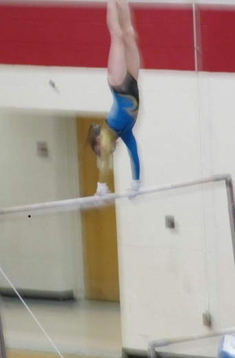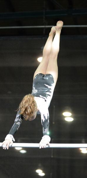 Age 11 level 7 gymnast, Jodi, performing giants on the uneven bars at WV States, 2012.