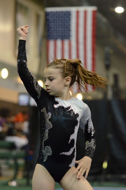 Another great picture with the American Flag and Jodi sparkling in her new leotard during her level 7 floor routine at the USAG Open Championships.