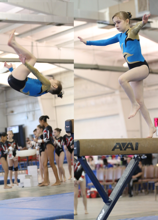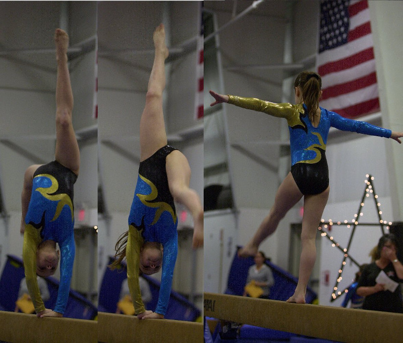 This picture tells a story of a girl who did not think she could compete at level 7, who then went onto the State Meet to perform a beautiful back handspring on beam and placed second by only .05 points.